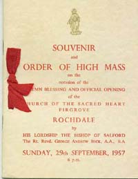1957 On 29th September 1957 he blessed and opened the new church. The cost of the building - Church and Priests' House, including furnishings was £50,000.